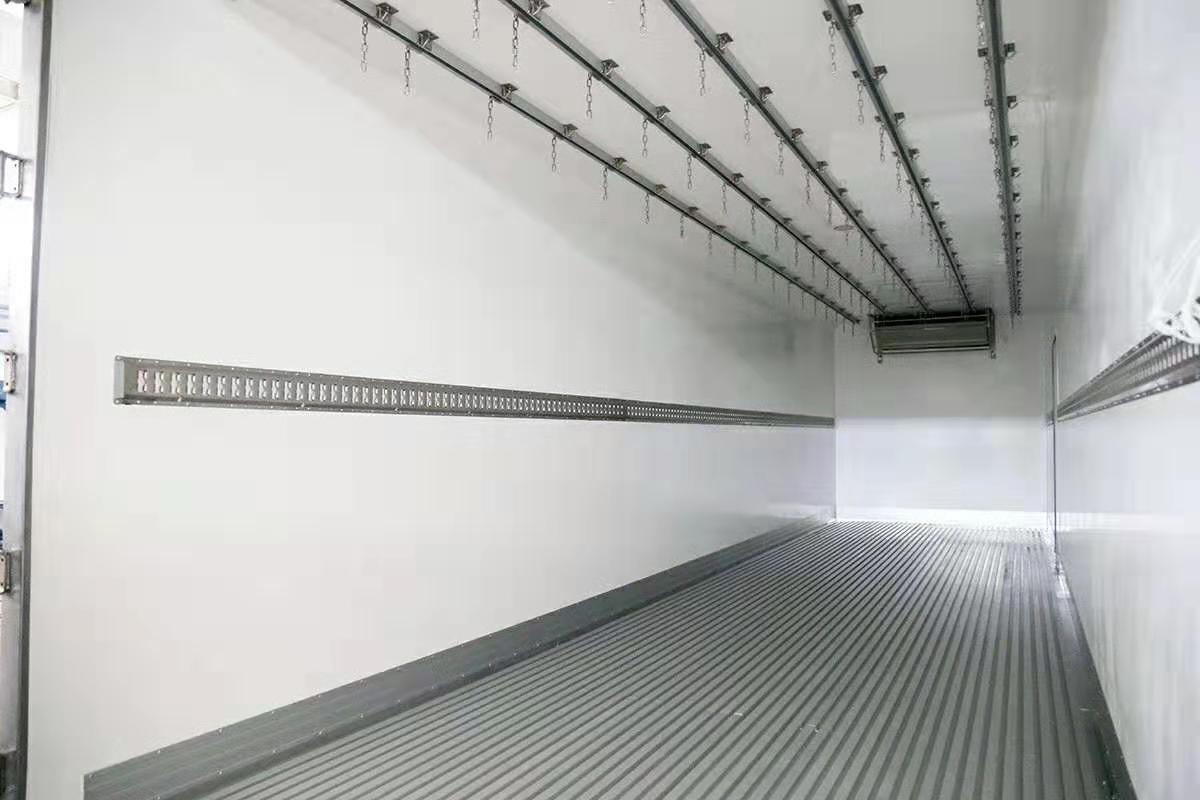 重汽豪沃國六前四后八TX冷藏車采用中國重汽冷藏車專用底盤,德國曼326或350馬力發動機,9檔同步器變速箱,軸距1800+3800+1350mm,前后橋5.5/11T,11.00R20鋼絲胎,TX-M駕駛室,原廠冷暖空調,中控鎖,電動門窗。國內知名廠商生產的玻璃鋼,各板塊間用高強度結構膠粘接,配以鋁合金型材鉚接成整體,中間8CM聚氨脂泡沫保溫,廂頂封閉,制冷效果更顯著。不銹鋼門鉸鏈及栓桿。車廂內部尺寸:9350,9450×2420×2490(mm)。車廂地板標配防滑花紋鋁板。