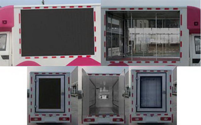 1,廂體后門單開,可選裝雙開或上翻;側板可上翻可根據客戶需求選擇在車身兩側任意一面開啟售賣窗口;廂體下欄板在售貨作業時可展開平放以擴展貨臺面積。側板和后門均可選裝燈箱或LED屏。2,隨底盤選裝前霧燈,前保,前大燈。 |