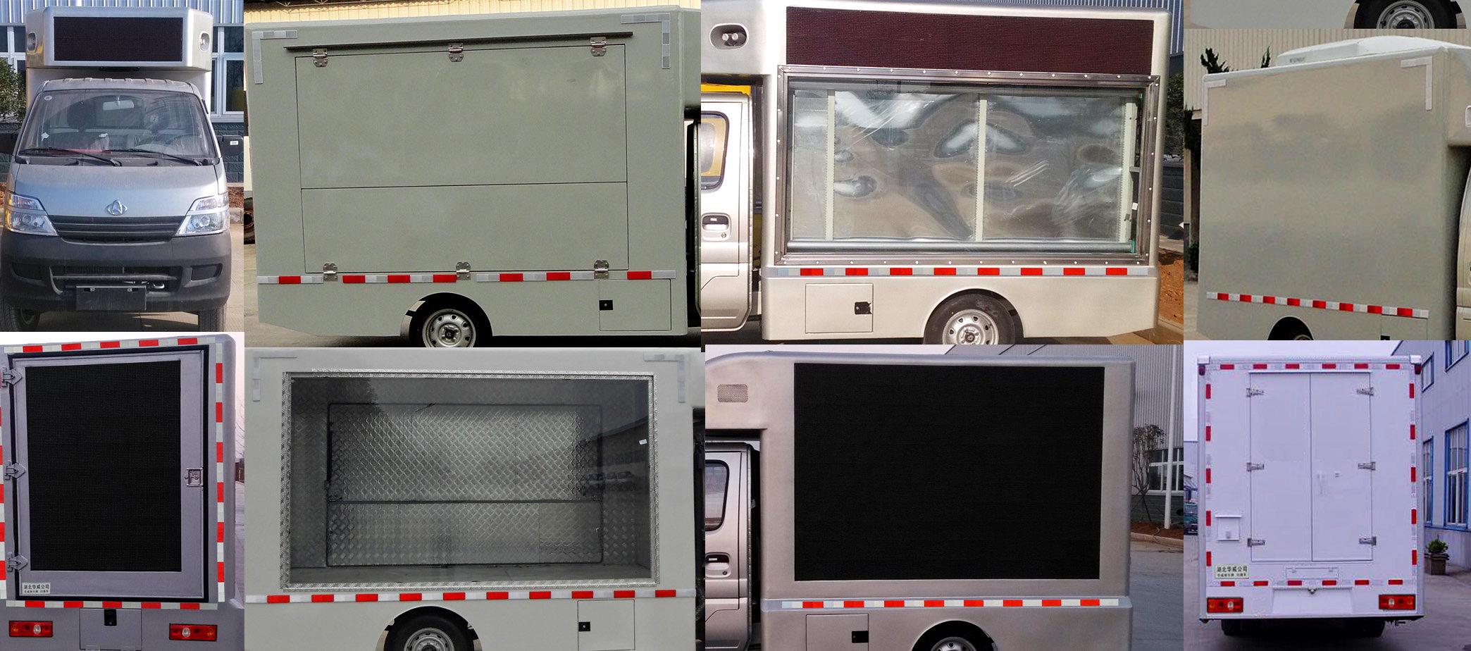 1.僅選擇2600mm軸距;2.車廂頂部封閉,不可開啟;3.廂內內部設備可根據用戶要求定制如發電機/冰柜/冷飲機/售貨臺/炊具等;4.發動機LJ474Q3E2最大凈功率為58kw,選裝玻璃鋼整體造型;選裝左右兩側不同結構形式的側翻門/后門,選裝LED屏,選裝頂置空調,導流罩,燈箱廣告. |