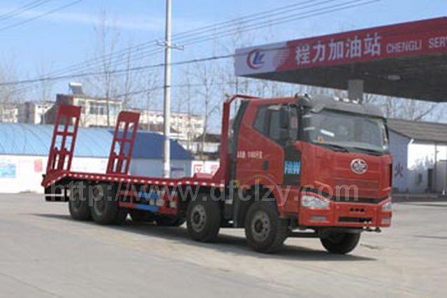解放J6前四后八平板運輸車又稱大型工程機械運輸車,主要有采用恒天楚風、東風、解放等底盤,分為楚風平板運輸車、解放平板運輸車、東風平板運輸車,可拉5-20噸挖掘機,裝載機,收割機一樣的不可拆卸物體。