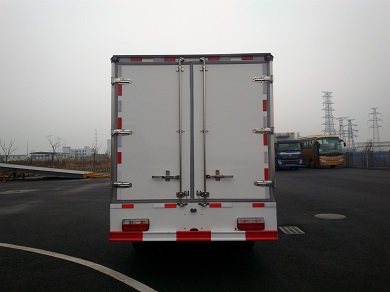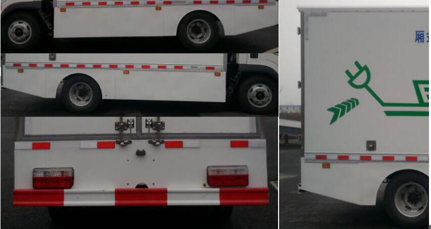 貨廂頂部封閉,不可開啟.儲能裝置種類/型號/生產企業:磷酸亞鐵鋰電池/IFP14114198/駱駝集團新能源電池有限公司.整車長度為6100mm,5995mm;對應后懸為1600mm,1495mm;電機/電機控制器型號/生產企業:TZ365XS-YBM301/南京越博動力系統股份有限公司,KTZ54X33S-YBC301/南京越博動力系統股份有限公司;電機功率/峰值功率:60/100Kw,該產品的技術階段為發展期,ABS系統生產廠家/型號:廣州市科密汽車電子控制技術有限公司/CM4XL-4S/4K(4S/4M),防護材料:Q235A碳鋼,連接方式:左右側面部防護為裙邊結構故側防護豁免,后部防護裝置與車架采用焊接連接,后部防護斷面尺寸(mm):120×50,后部防護離地高度(mm):475。 |