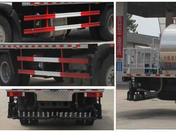 罐體有效容積:6.65立方米,運(yùn)輸介質(zhì)為液態(tài)瀝青,密度:900千克/立方米。橢圓罐體外形尺寸(長/長軸/短軸)(mm):4350/2410/1710(罐體內(nèi)部尺寸為3980/1950/1250), 罐體保溫層厚度為230mm。防護(hù)材料:Q235A碳鋼,連接方式:左右側(cè)面防護(hù)與副梁采用焊接連接;后部專用裝置與后防護(hù)相干涉,故后防護(hù)豁免.ABS系統(tǒng)型號為4460046300,生產(chǎn)企業(yè)為威伯科汽車控制系統(tǒng)(中國)有限公司;隨底盤選裝駕駛室及其附件 |