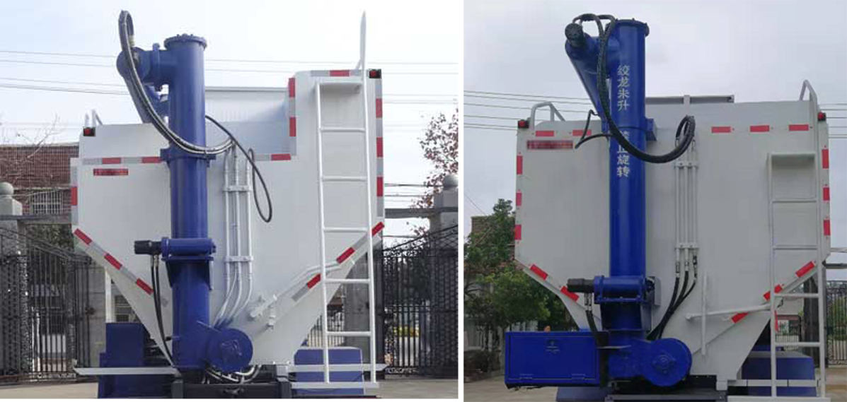 東風天龍前四后八40方散裝飼料運輸車選裝配置:遙控操作蛟龍舉升或旋轉;車載發電機;液壓蛟龍。